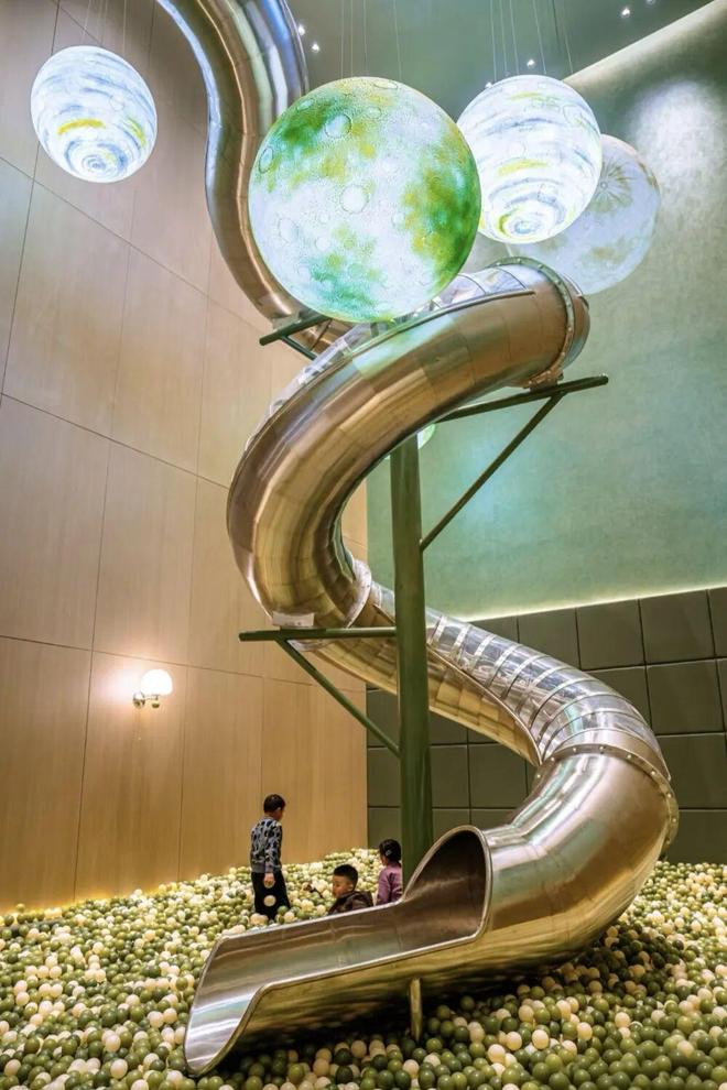除此之外,和萃揽悦园竟然还有结合儿童主题架空层设计的双层奈尔宝版的儿童乐园,旋转楼梯、滑滑梯、攀爬网……一站式轻松遛娃。